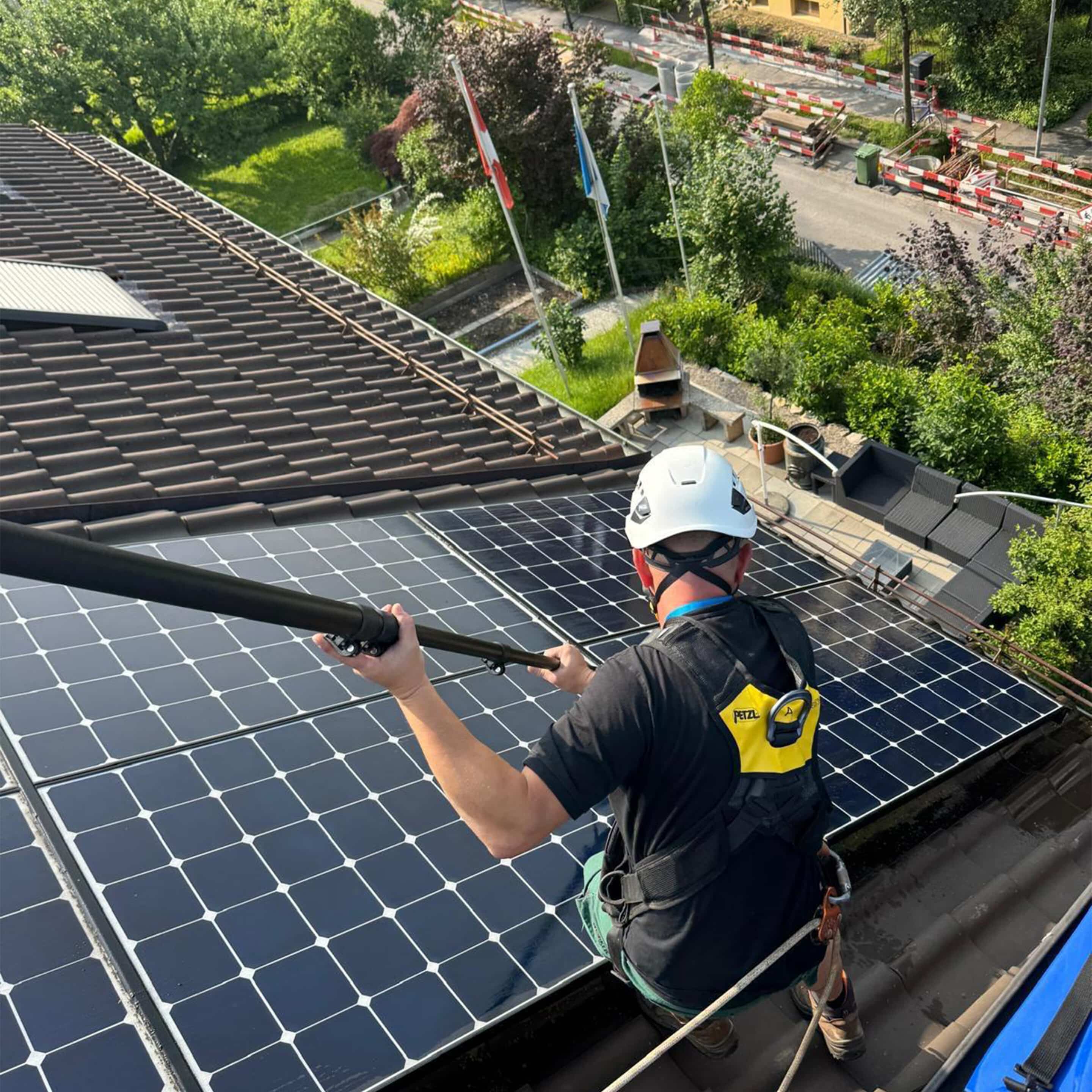 Dank dieser Qualifikation garantieren wir sichere, effiziente und fachgerechte Photovoltaikreinigungen, auch auf schwer zugänglichen oder steilen Dachflächen